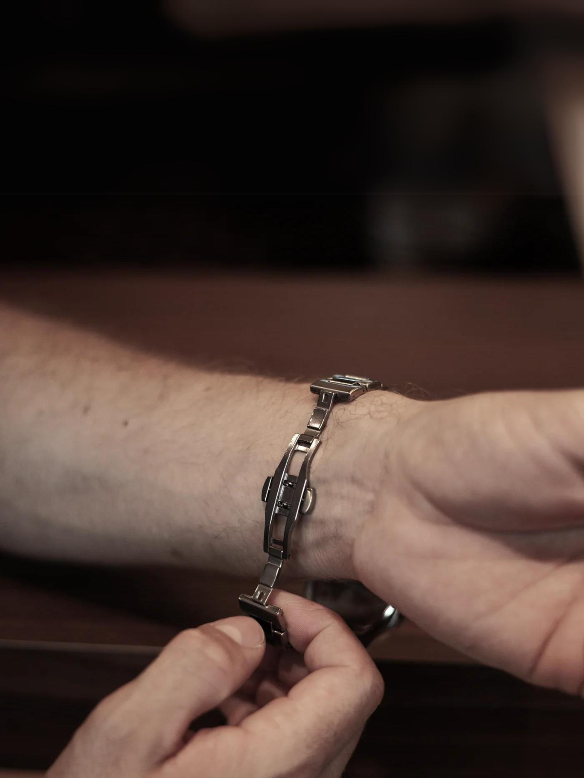 The strap stands out along its entire length, concealing the clasp and showcasing a premium high-watchmaking finish, emphasising its ergonomics and comfort.